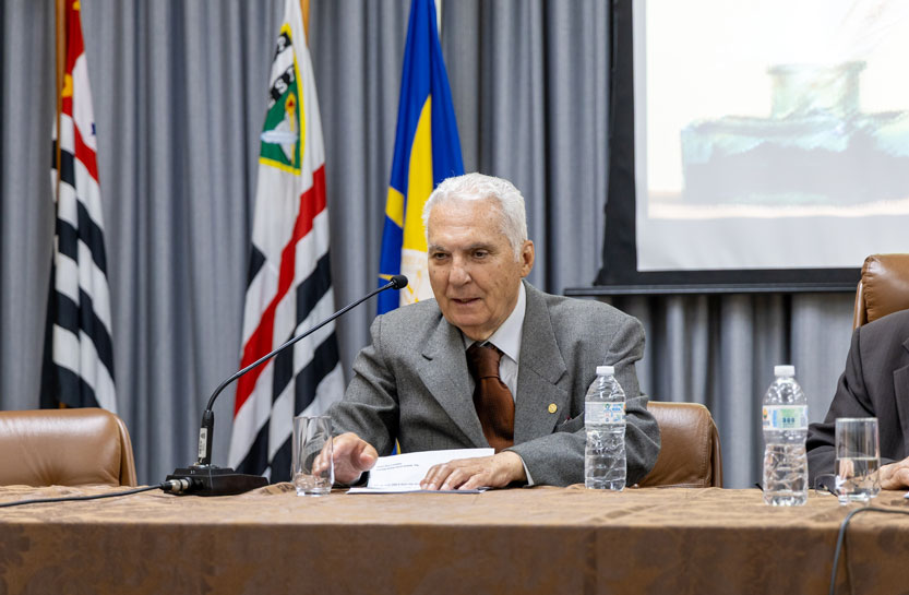 Aclibes Burgarelli (presidente da ALCA) em discurso aos acadêmicos da ALCA. Foto: Elisa Izumi Torres