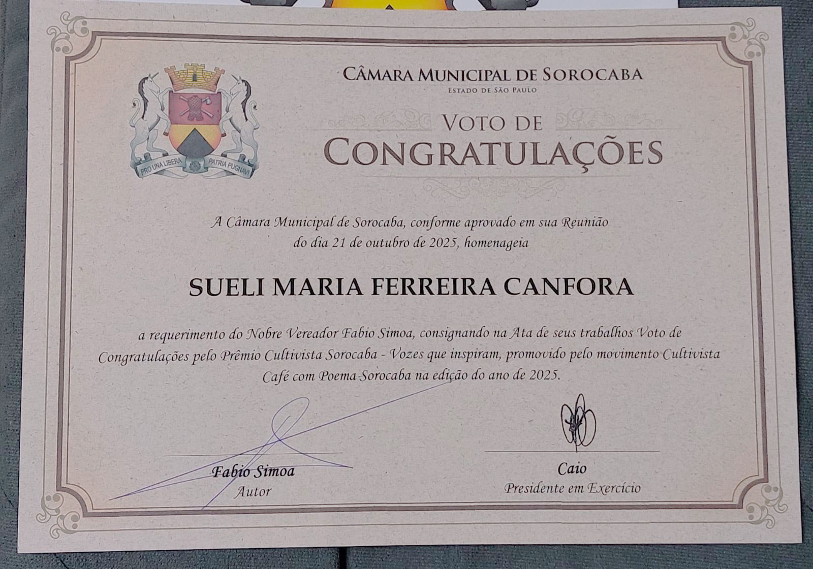 No dia 30 de outubro, a acadêmica Su Cânfora (cadeira nº 5 de Letras) foi homenageada na Câmara Municipal de Sorocaba com o prêmio "Cultivista de Sorocaba - Vozes que inspiram".