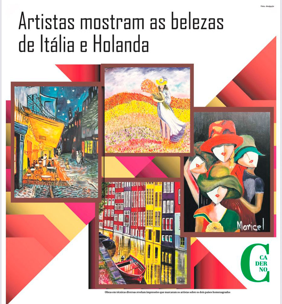 As acadêmicas Marly Stracieri (cadeira nº 17 de Artes), Arlete Vergílio Piccolo (cadeira nº 4 de Artes), Eufrazia de Andrade Fregonesi (in memoriam) e Gení Fuzato Dagnoni (cadeira nº 14 de Artes) participam da exposição “Belezas da Itália e Holanda”, que será aberta à visitação gratuita, de 21 a 28 de novembro de 2025, de segunda a sexta-feira, das 10h às 12h e das 14h às 17h, na Casa D’Itália.