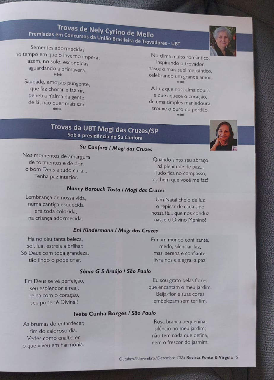 Na ocasião, foi lançada a revista Ponto & Vírgula, da escritora Irene Coimbra. A publicação conta com duas trovas de Su Canfora e da União Brasileira de Trovadores (UBT) de Mogi das Cruzes, na qual a acadêmica é delegada, conforme falou em vídeo publicado em sua página no Instagram.