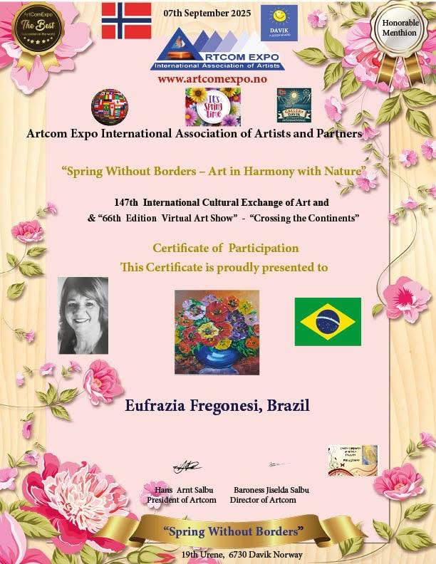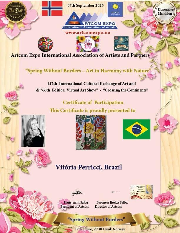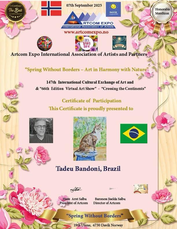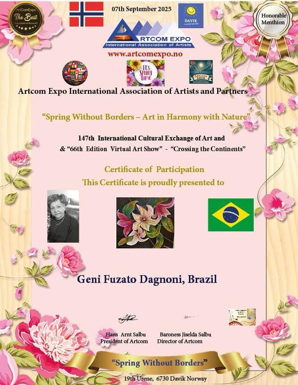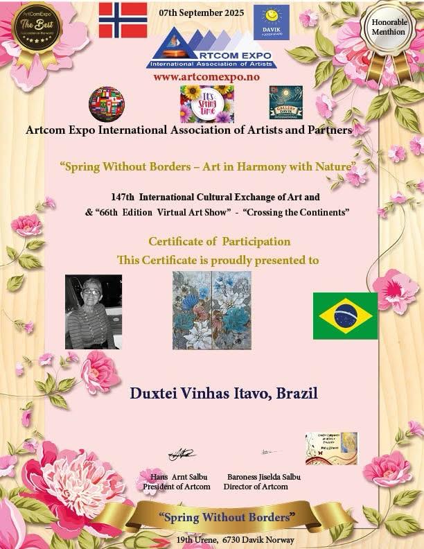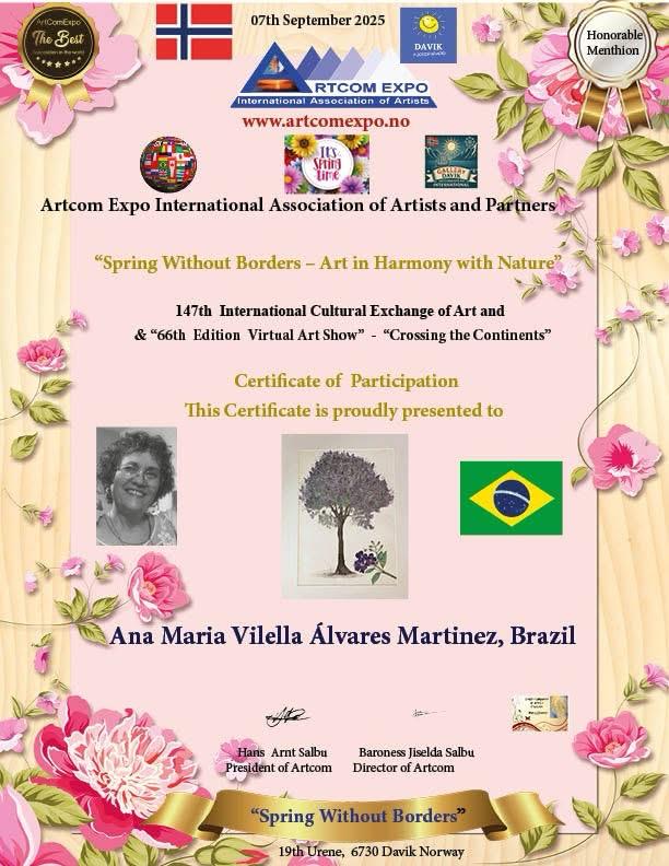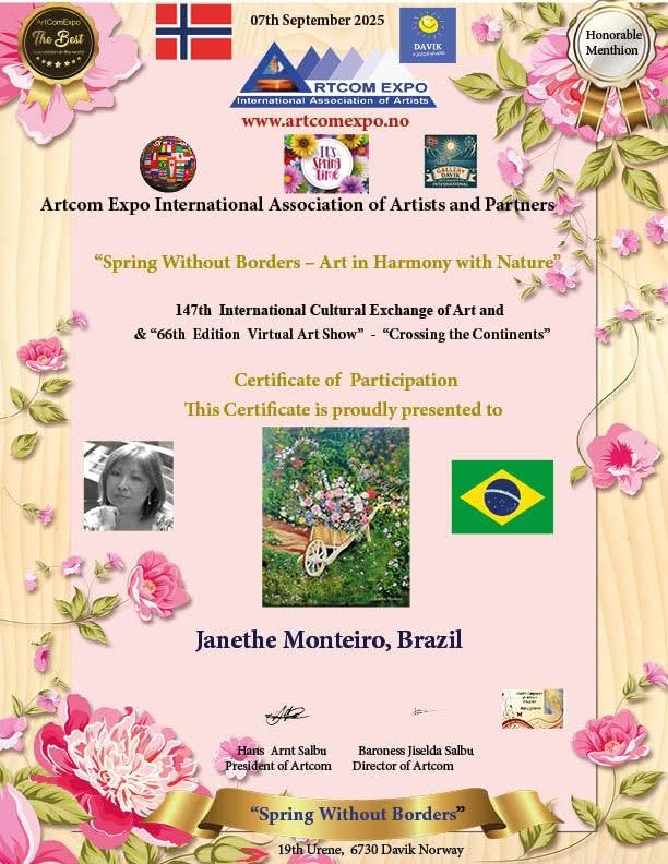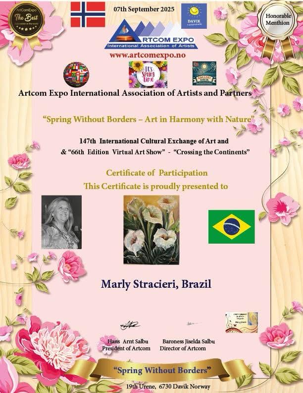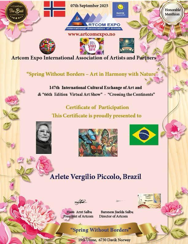 No dia 1º de setembro, 15 acadêmicos da ALCA participaram da exposição virtual internacional da Noruega, Artcom Expo International Association of Artsts and Partners, com o tema Spring Without Borders - Art in Harmony with Nature. A participação foi intermediada pela acadêmica Marli Stracieri.